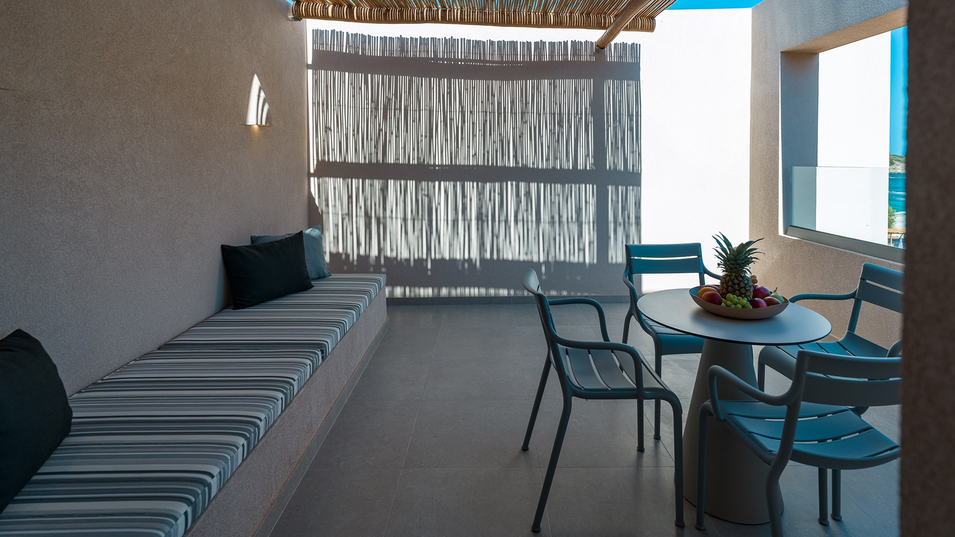 Framed by expansive windows, the suite opens onto a private balcony, inviting you to unwind while embracing the resort’s tranquil surroundings—a perfect blend of privacy and effortless luxury.