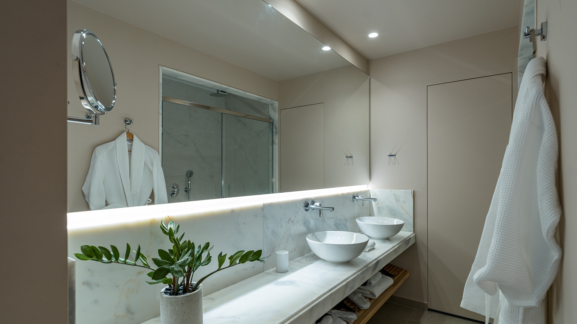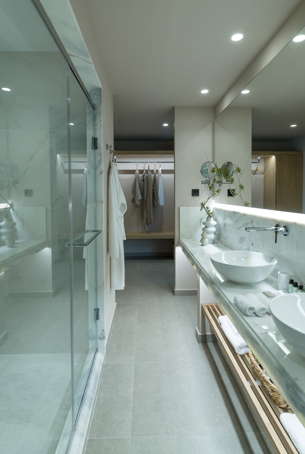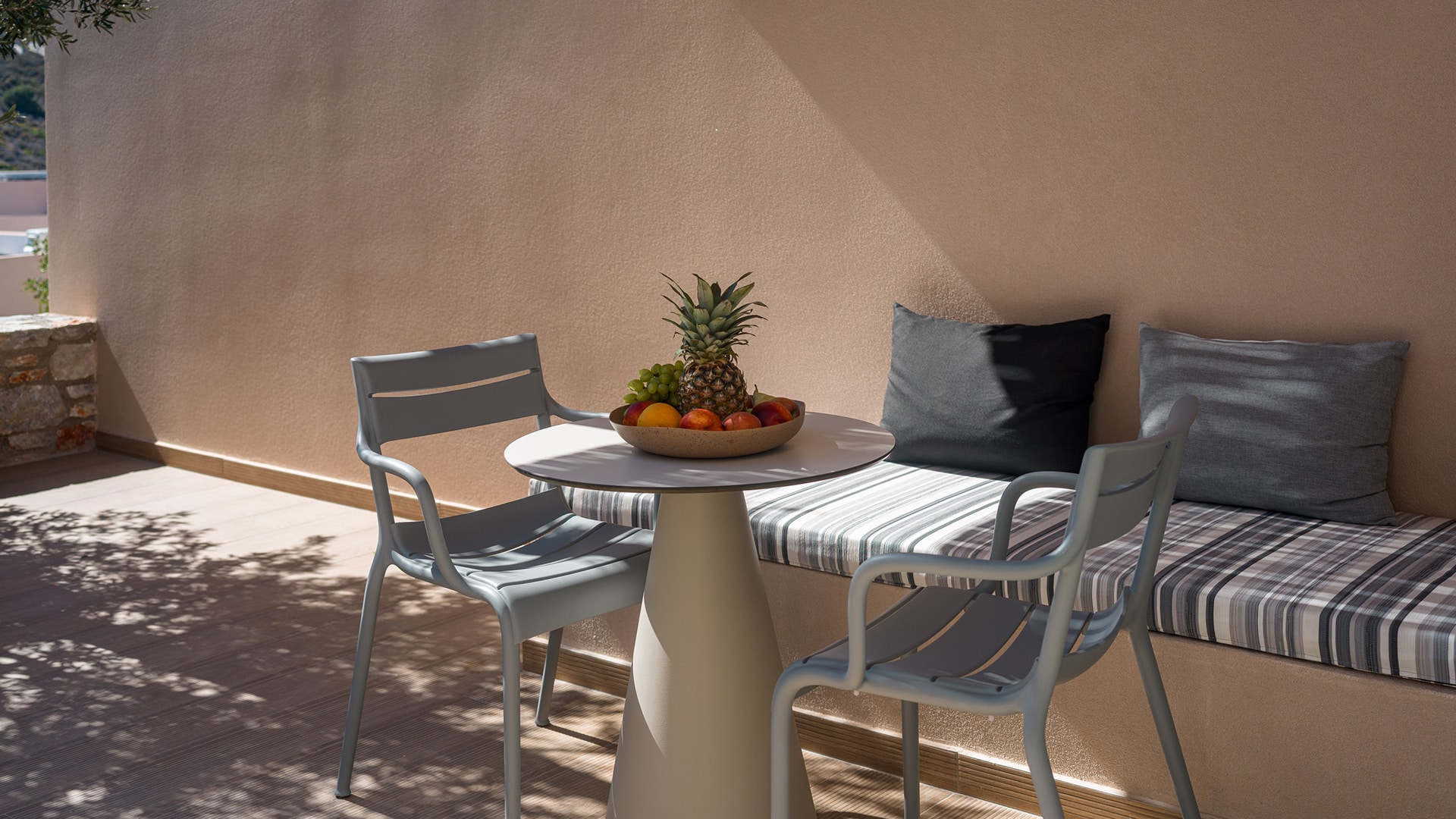 Elegant and serene, the Pool Junior Suite is designed for pure relaxation. This stylish retreat features a king-size bed, a cozy sofa bed, and a sleek bathroom with a walk-in rain shower. Floor-to-ceiling windows open onto a secluded terrace, where a private pool invites you to unwind in complete privacy. Embraced by the resort’s tranquil surroundings, this suite is a haven for laid-back luxury.